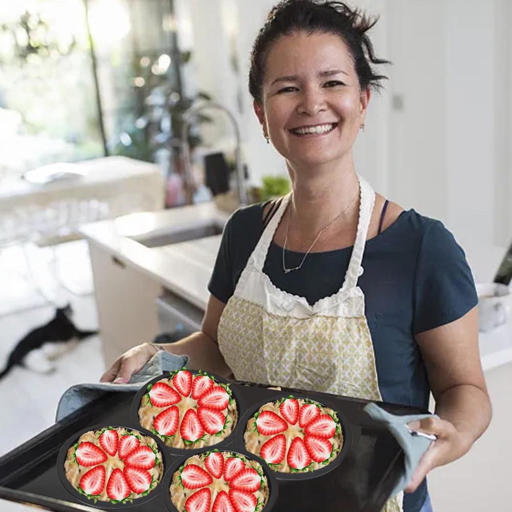 Round Baking PansSpecifications:Material: Carbon steelColor: BlackWeight: 46 gramsFeatures:-Made of high-quality carbon steel, Individual Pie Dishes is safe and healthy and can come into direct contact with food. Please rest assured to use it.-High temperature and corrosion resistance, less prone to rust and deformation, can be directly placed in a heated oven.-The round and smooth rolled edge design provides a comfortable grip, making it easy to remove and not injuring the hand.-The integrated design is not easy to break or damage and can be used for a long time.-The Round Mini Tart Tins allow you to easily make cheesecake, souffles, mousse, pizza, or any type of pie/pie.-Pie jars are an ideal choice for various baked goods, making delicious dishes at home or at parties.