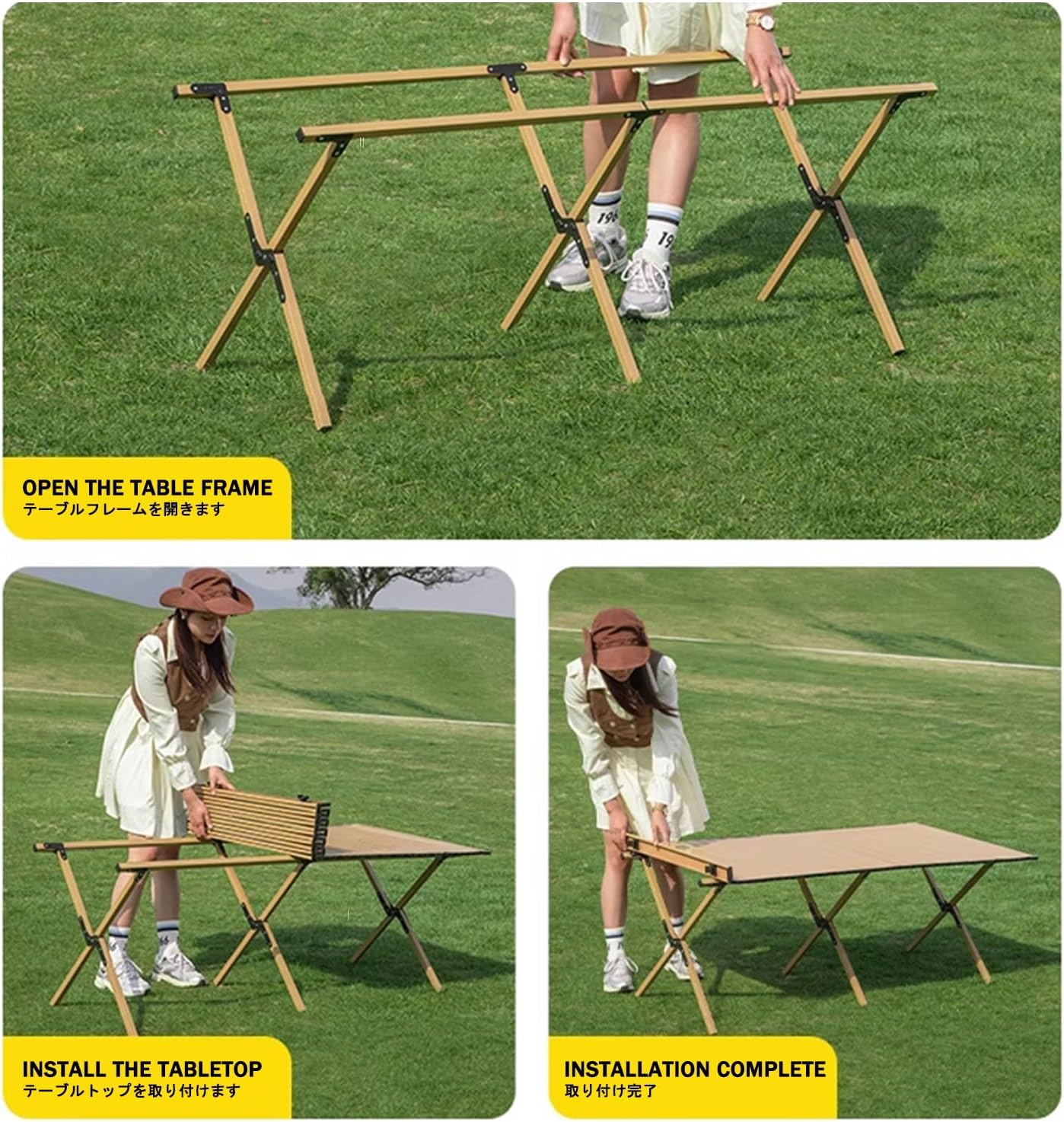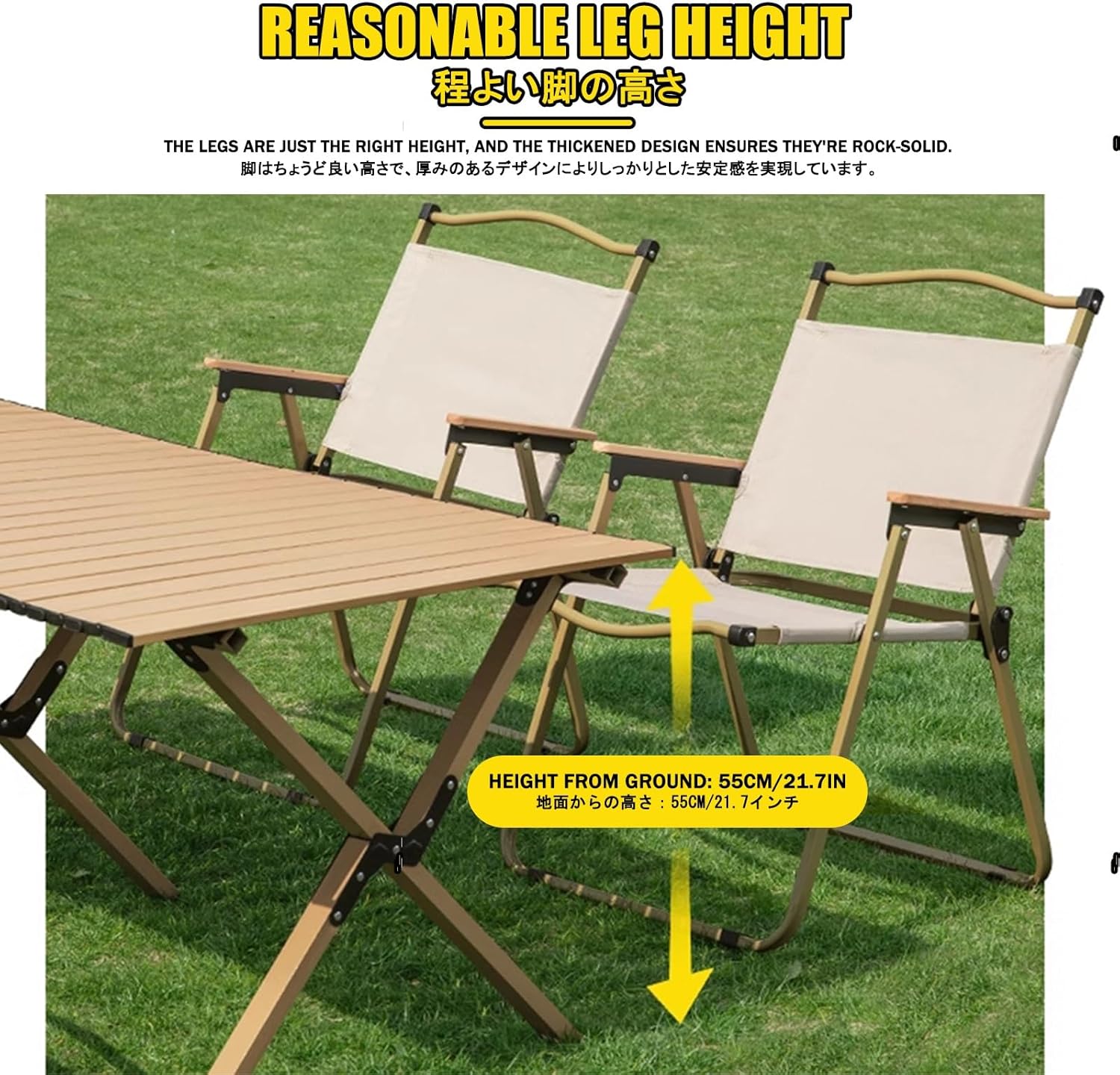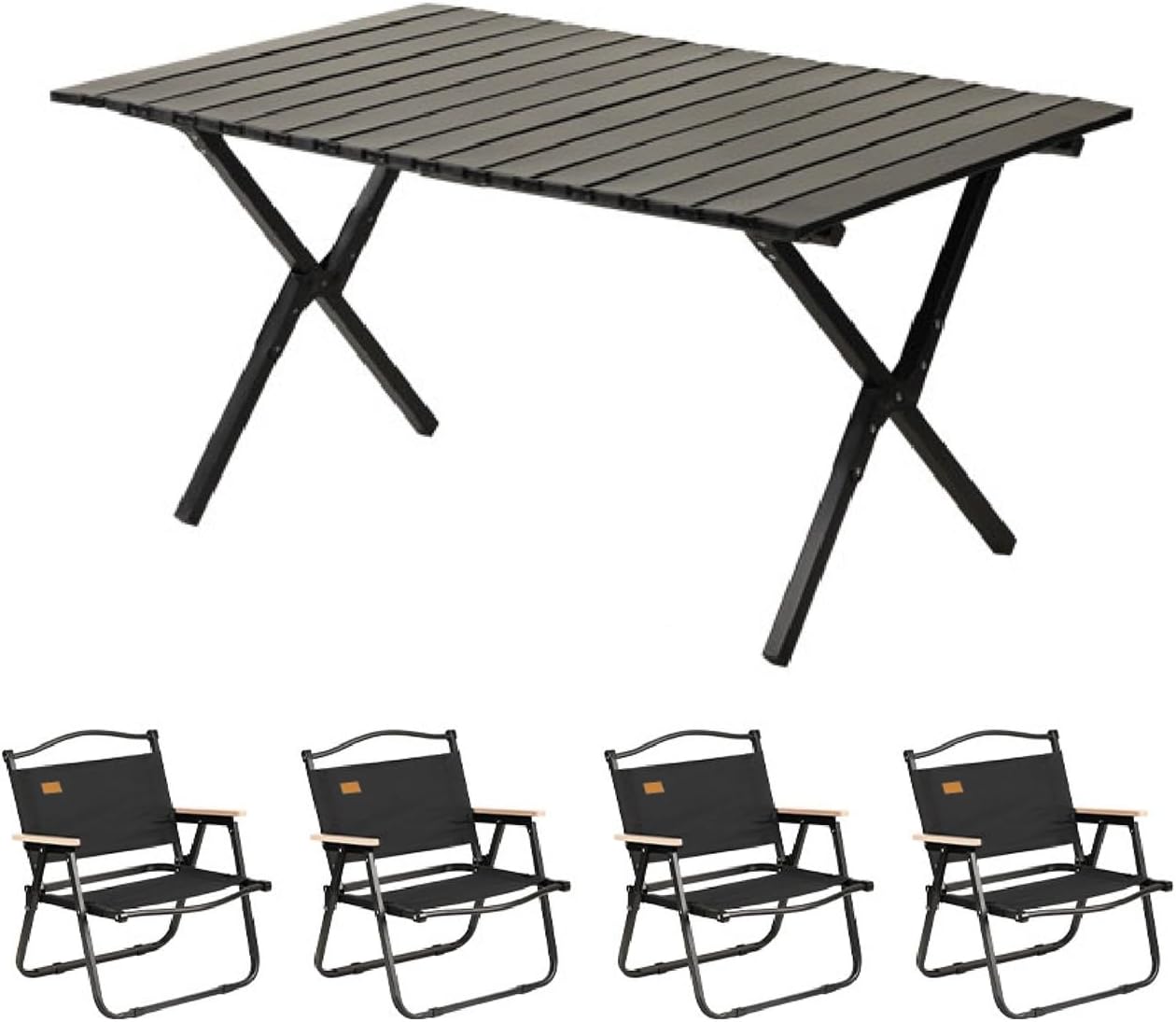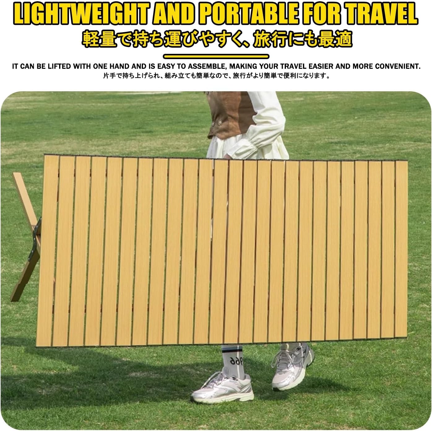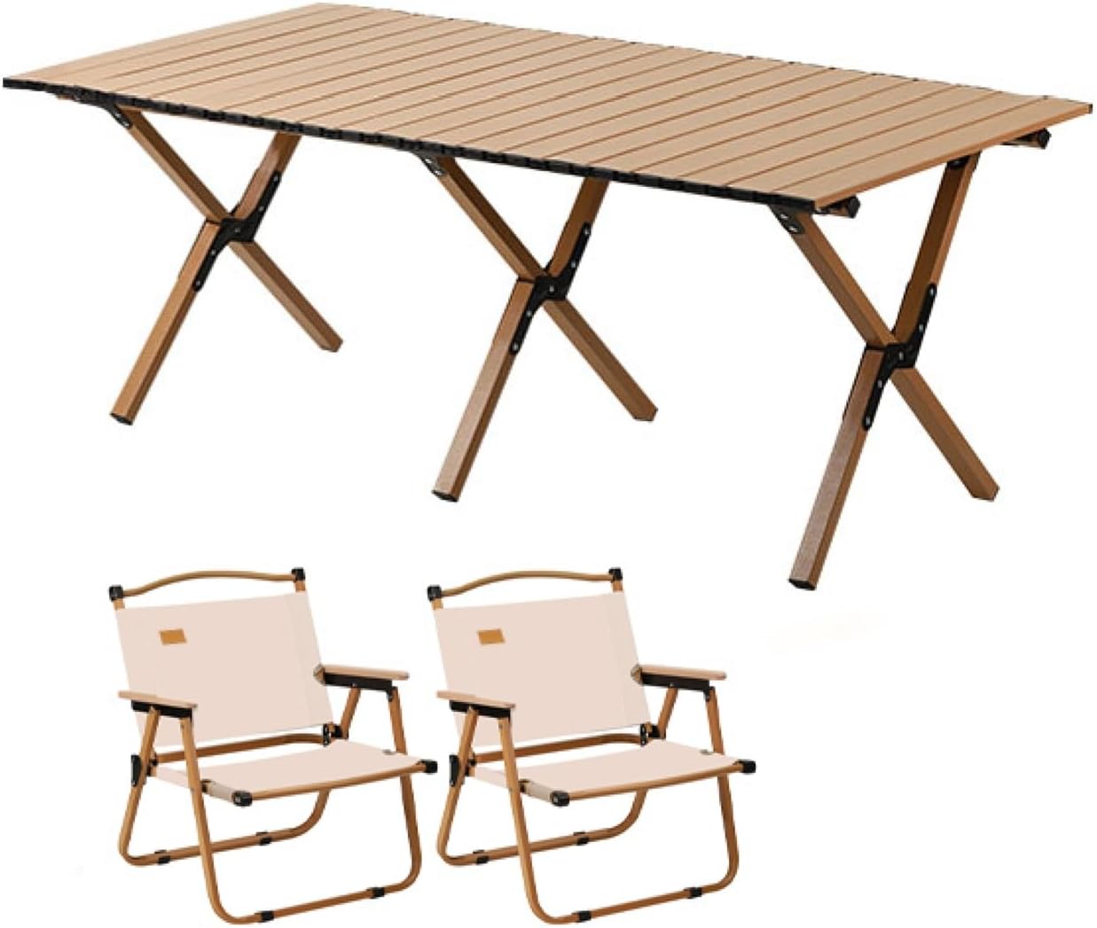 Welcome to my shop~This foldable camping table is made of thickened wood-grain carbon steel alloy and painted throughout. Its triangular structure and thickened legs make it durable and sturdy, with excellent load-bearing and pressure-resistant performance. The wide tabletop can easily accommodate multiple people.It features a detachable, roll-up tabletop that can be set up and stored in three steps. It's compact enough to fit in a bag. It's versatile and suitable for camping, fishing, and other outdoor activities, as well as for garden relaxation.- Name: Outdoor Folding Table and Chair Set- Color: Natural Wood, Black- Material: Carbon Steel, Oxford Cloth- Table Dimensions: 90*60*45cm/35.4*23.6*17.7in, 120*60*45cm/47.2*23.6*17.7in, 150*70*55cm/59*27.6*21.7in- Chair Dimensions: 53*43*62cm/20.9*16.9*24.4in- Suitable for various outdoor occasions: camping, picnics, family outings, garden parties, RV vacations, hiking, fishing, barbecues, travel, parks- Includes: Folding camp chairs, folding table, carrying/storage bag.Safety Warning: When used outdoors, the chairs must not exceed a weight limit of 100 kg, and the table must not exceed a weight limit of 75 kg. Please ensure the table is properly installed and secured.