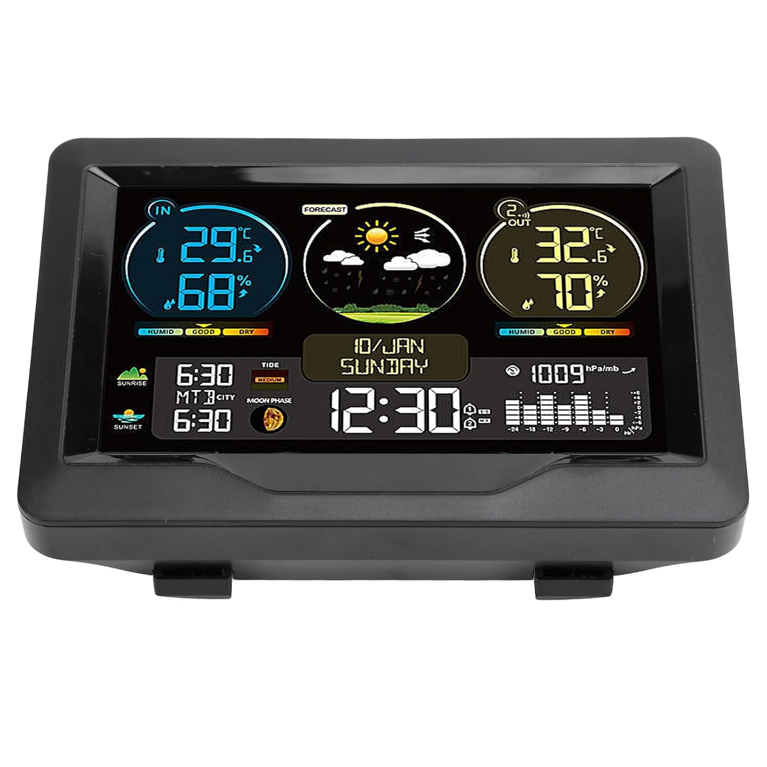 Item Type: Digital Weather ThermometerMaterial: ABSHumidity: 20%RH-95%RHTemperature: Indoor Temperature Measurement Range: -9.9°C-50°C/15°F-122°F, Outdoor Temperature Measurement Range: -40°C-70°C/-40°F-158°FTemperature Unit: °F or °CIndoor Thermometer Battery: Dry Battery, 2 AA Batteries (Not Included)Outdoor Thermometer Battery: Dry Battery, 2 AA Batteries (Not Included)Weight: Approx. 428.00g / 15.1ozPackage List:1 x Indoor Monitor1 x Outdoor Thermometer1 x Power Cord2 x Manuals
