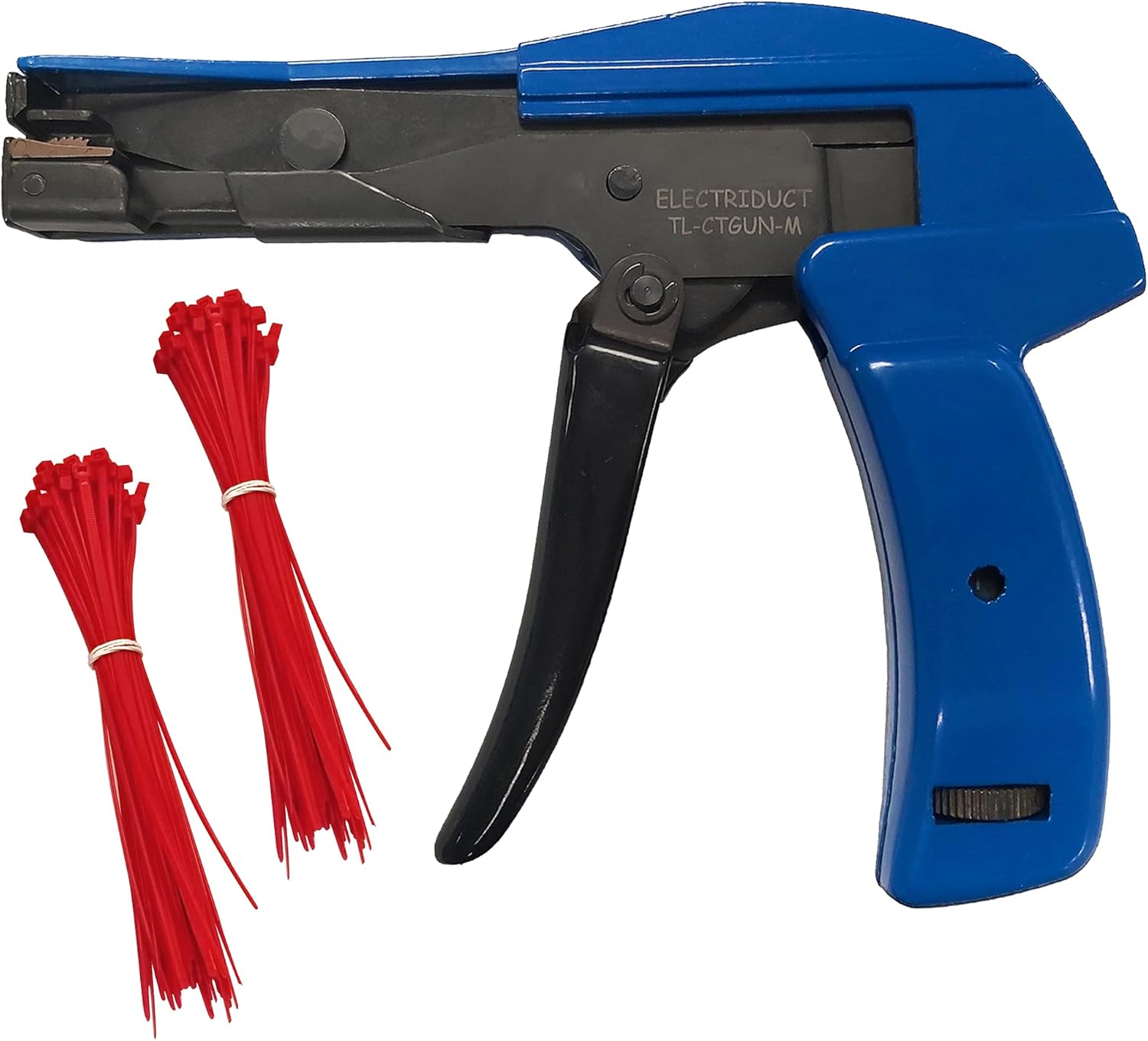Electriduct Cable Tie Gun Zip Tie Cutting and Fastening Tool with Adjustable Tension for Nylon Cable Ties with Flush Cut (Pack of 2)