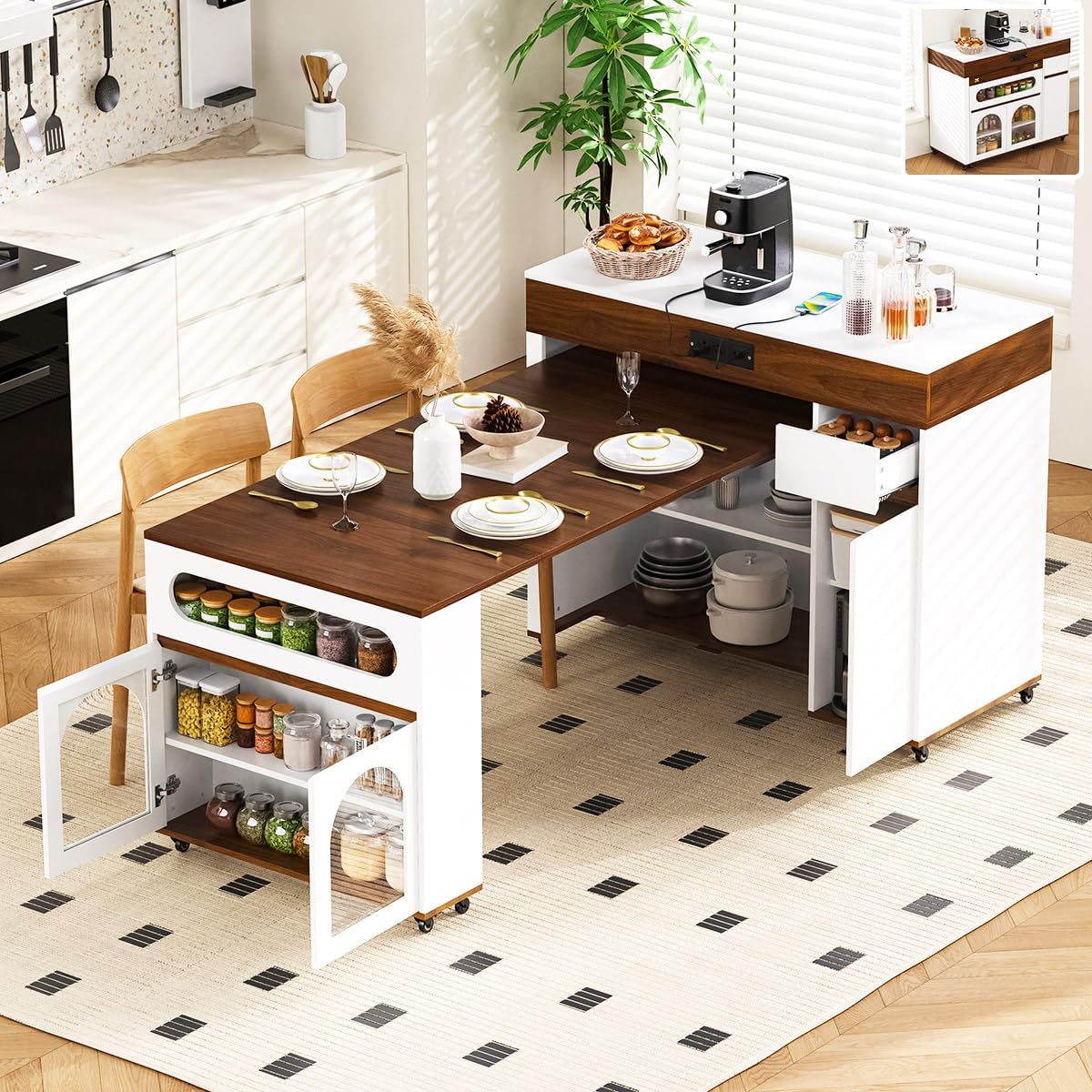 Product Information Place of Origin: China Main Material: Glass + Particle Board + MDF + Steel Finish: Sticker Product Dimensions: Extendable Length: 19.9"–73.8"L Assembled Size: 73.80"L × 43.50"W × 37.60"H Product Weight: 159.86 lbs Package Info: Sub-item 1 : 36.22 × 19.09 × 9.65 in, 83.33 lbs Sub-item 2 : 50 × 24.21 × 8.46 in, 95.46 lbs Package Number: 2 Weight Capacity: Tabletop: 110 LBS Drawer: 11 LBS Shelf: 55 LBS Open Shelf: 44 LBS