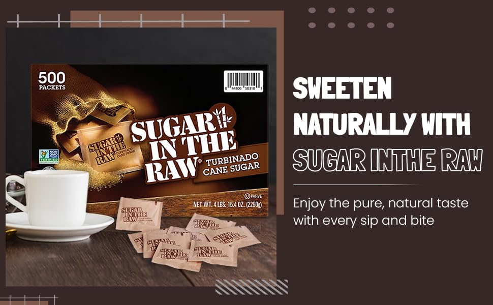 Individually Wrapped Packets: The Sugar InThe Raw cane sugar arrives in individual packs, being ideal for your daily needs or while on the go, while ensuring a well-balanced quantity that’s perfect for adding to your cup of coffee!