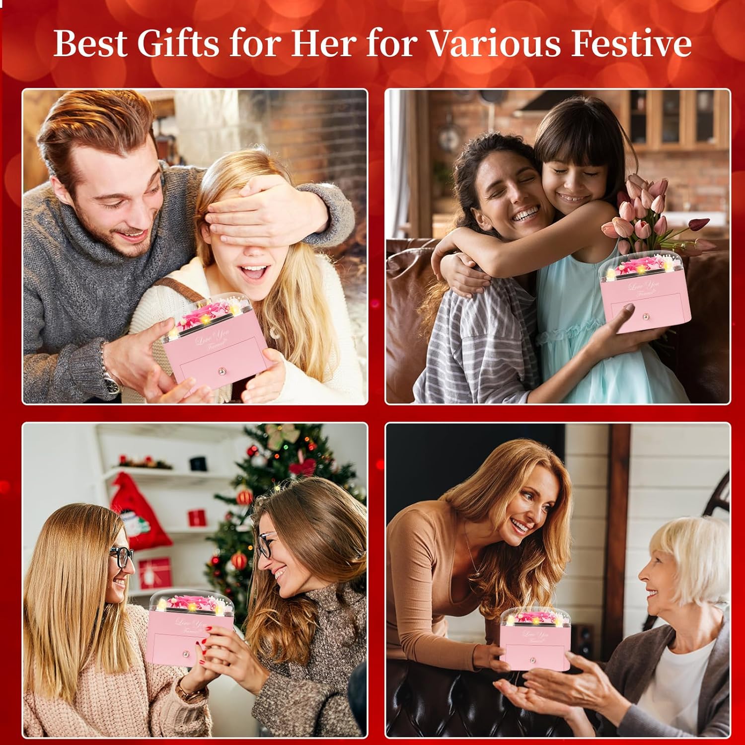 🌹【Mothers Day Gifts for Mom from Daughter】Preserved galaxy rose is made of 100% real nature fresh flowers, After a unique preservation method, it will stay for 3-5 years. No pollen. No need to water, no maintenance required. Meanwhile, Lebana preserved flowers gift is a perfect anniversary and birthday gift for her, on behalf of eternal love. As an flowers for delivery prime birthday gifts for mom grandma wife girlfriend, Keeps your love fresh and eternal, I love you gifts for girlfriend. ❤ 【 Preserved Rose with Necklace】Unique double heart-shaped structure and is engraved with " I LOVE YOU necklace 100 Languages " to express love to her. The two hearts are tightly intertwined, symbolizing the love for each other and it will be an exclusive gift for her.The i love you necklace on hidden inside bottom of the rose box, as a romantic gifts for her, Unique design of double love "I LOVE YOU necklace" and gift box preserved rose, gift Ideas for women for every romantic occasion. 🎁【Birthday Gifts for Women】Great idea for women's birthday gifts. The Most Romantic Surprise Gifts for Mom, Wife, Girlfriend, Daughter, Grandma Grandma Mothers day, Valentine's Day, Christmas, Thanksgiving, Anniversary Gift for Her, Marriage Proposals, regalos para el dia de la madre, New Year's Day, im sorry gifts for her or other Holiday Occasions Gift ideas for Women, mothers day gifts for wife who have everything,this colorful rose flower will never wither and die. 🎁【Im Sorry Gifts for Her Package】Mother's Day Gift Ideas Preserved Roses are well wrapped in the gift box,so that you could give directly without spend time on package. As an exquisite luxury gift,it can also store other jewelry. The necklace can be worn, and the rose box can be placed indoors as an ornament,Your lover will feel happy every day looking at it. 1 Preserved Eternal Rose + 1 Gift Box + 1 Double Heart Necklace(With I Love You Necklace in 100 Languages)+ 1 Gift Bag + 1 Greeting Card. 🌹【Buy at Ease】Our mother's day gla