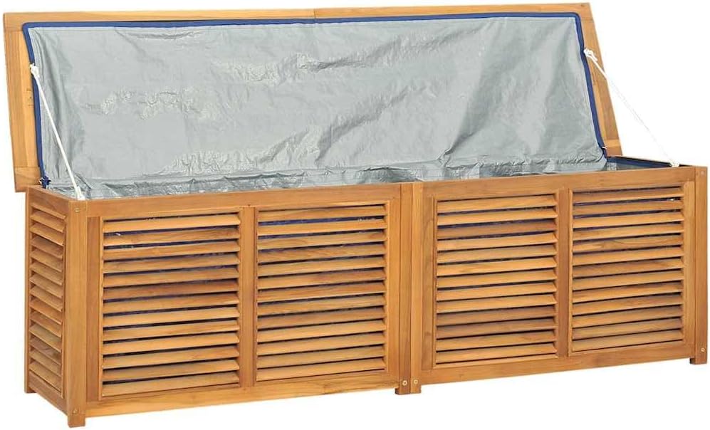 This Rustic Teak Garden Storage Box is the perfect choice for anyone wanting to keep their spaces tidy. It’s made of strong, high-quality teak wood and offers heaps of storage. Great for garden tools, cushions, or any essentials, it also adds a touch of warmth and style to your balcony, patio, or garden.Ample Storage: This garden storage box has loads of space, letting you keep everything from cushions to gardening tools neat and tidy.Durable Construction: Made from solid teak wood, this box is tough and ready for outdoor life. The oiled finish makes it look great while protecting from moisture.Weather Resistant: The inclusion of a water-resistant PE bag means your things stay safe from moisture and UV rays. This keeps everything secure and protected against the weather.Versatile Use: Great indoors or out, whether it’s for easy access to cushions on your balcony or storing tools in the garden.Stylish and Functional: The rustic design adds charm to your outdoor space, making it a stylish piece in any setting while being super practical.Color: Brown Shape: RectangularMaterial: Solid Teak woodFinish: Oiled Indoor/Outdoor: Indoor / OutdoorRoom: Garden and terraceDimensions: 68.9 x 68.9 x 21.7 in (W x L x H)Weight: 67.35 lbsDelivery Contains: Garden storage box, PE bag, assembly manualAssembly Required: YesRecommended Number of People for Assembly: 1