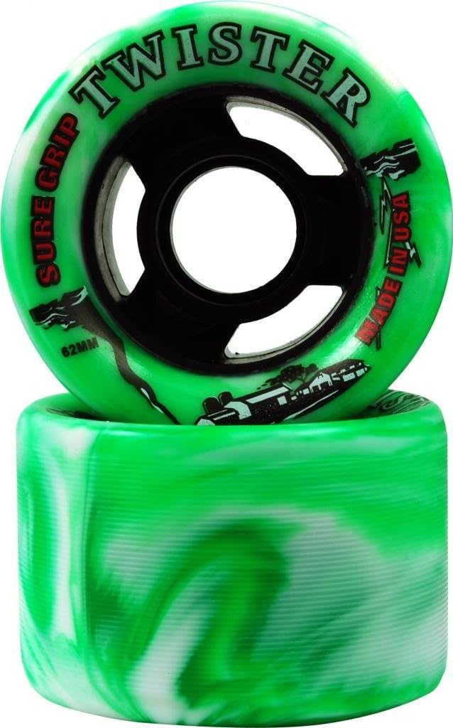 Sure Grip Twister Swirl Quad Indoor Speed Roller Skate Wheels - Your Choice of Colors! - Twister - the classic - from the skate experts at Sure Grip. Psychedelic swirly colors! Sold in a 8 Packs of Wheels! Your ticket to a wild ride! Blow away the competition with the coolest wheels around! Feel the natural power of American urethane on a lightweight nylon core. Swirl on baby! 62mm x 42mm in 96A Hardness (Firm but definitely with a bit of Grip!)